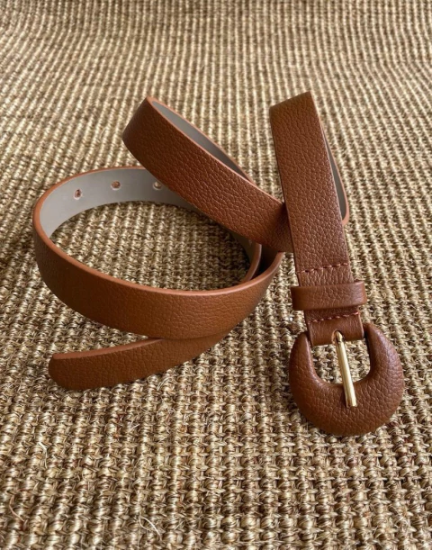 Sua fivela é discreta, sendo encapado no mesmo tom do cinto.